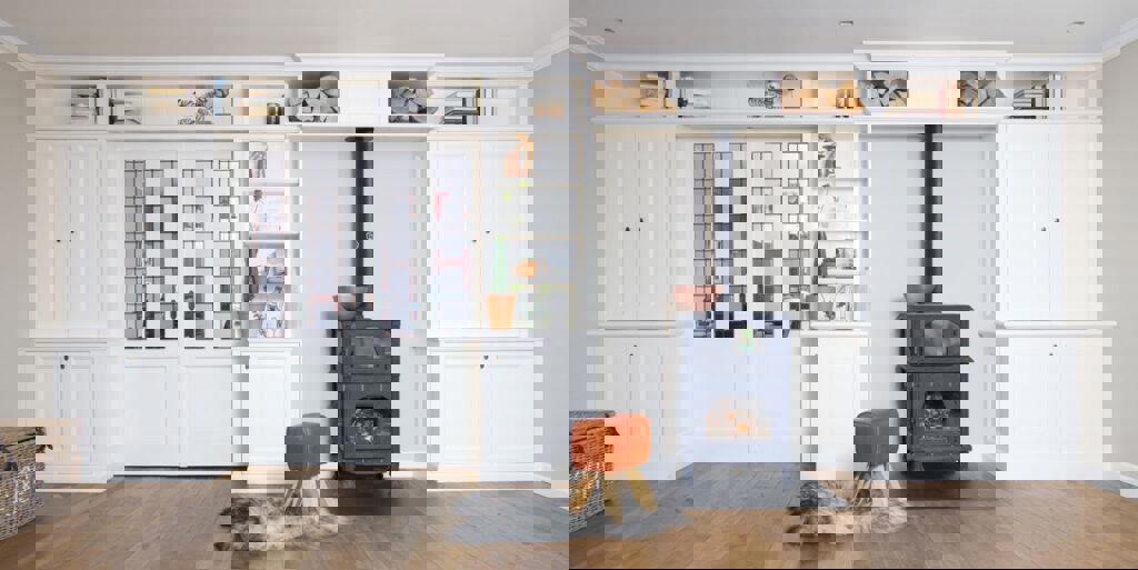 Voor een opdrachtgever in de regio Hoorn ontwierp Ronald Schouwink een kamer en suite met een bijzondere wens: de open haard moest een centrale plek krijgen in de kamer-en-suitekast. Het resultaat is een asymmetrische opstelling waarin de haard perfect tot zijn recht komt, een warme blikvanger tussen de leefruimtes.
